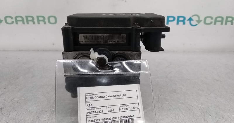 ABS OPEL COMBO Cassone/Limousine spaziosa [10.2001 - ...] 0265800443 | 0265231583 | 13182319 Riferimento TELEPECAS: 852701 28 Set 2024 |