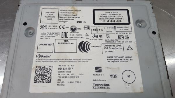 Autoradio CD SEAT LEON (5F1) | 12 - CD / SD / 5QA035824A / | SEZAZ2S0156008 Riferimento TELEPECAS: 163988 07 Jul 2024 |