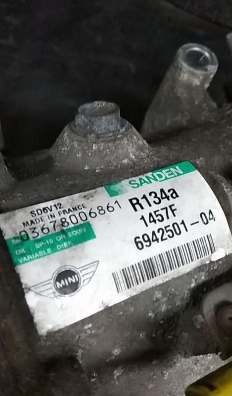 Air Conditioning A/C Compressor MINI MINI (R56) [11.2005 - 01.2014] 03678006861 | 6942501-04 | SANDEN Riferimento TELEPECAS: 1131097 05 Nov 2024 |