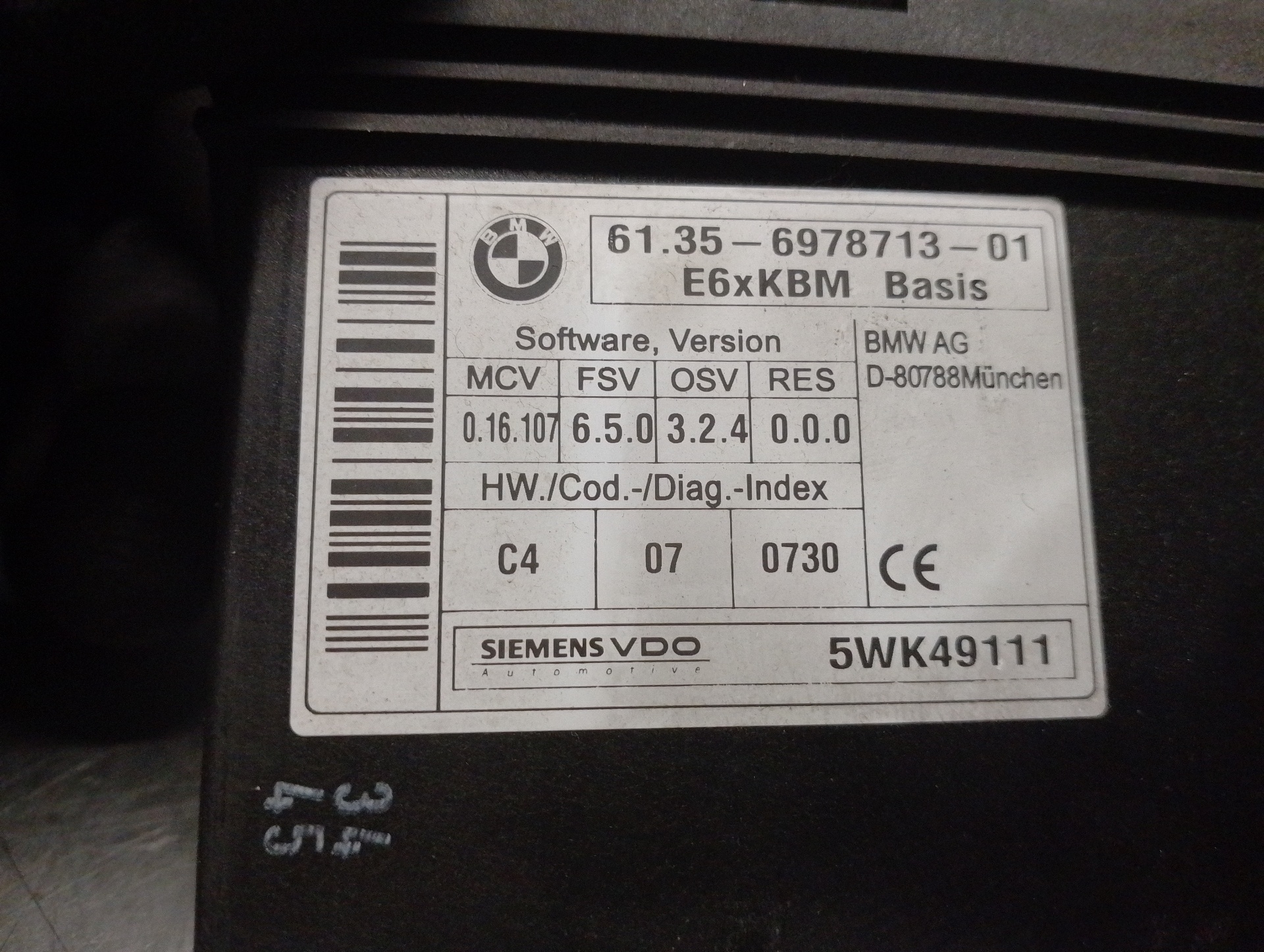 MODULO ELECTRONICO BMW SERIE 5 BERLINA (E60) 61356978713 | 5WK49111 | SIEMENS Riferimento TELEPECAS: 12531832 09 Jun 2023 |