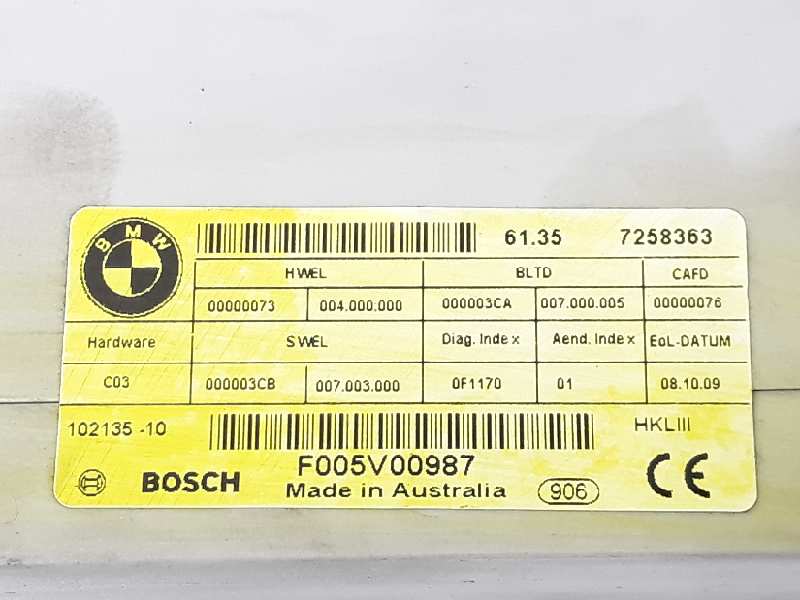 | Osservazioni | 61357258363 UNIDAD DE CONTROL, ELEVADOR DE PUERTA TRASERA 61357394649 BOSCH: F005V00987 |