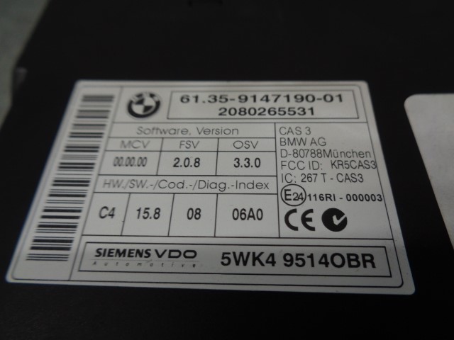 MODULO ELECTRONICO BMW X5 (E70) 61359147190 | 5WK495140BR | SIEMENS Riferimento TELEPECAS: 12746646 10 Abr 2023 |