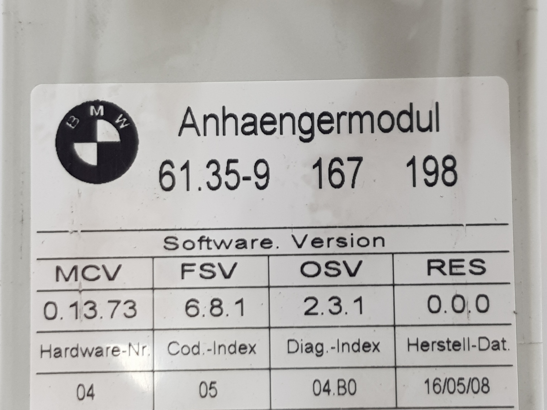 | Osservazioni | Módulo de remolque 61359167198 9167198 61359186177 61359221180 71606850497 |