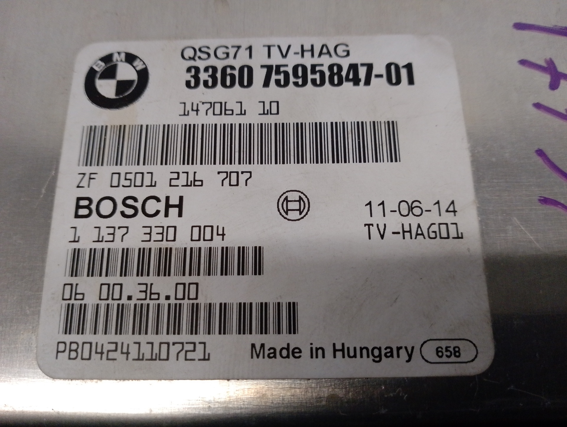 MODULO ELECTRONICO BMW X6 (E71) 33607595847 | 1137330004 | BOSCH Riferimento TELEPECAS: 12535913 21 Abr 2023 |
