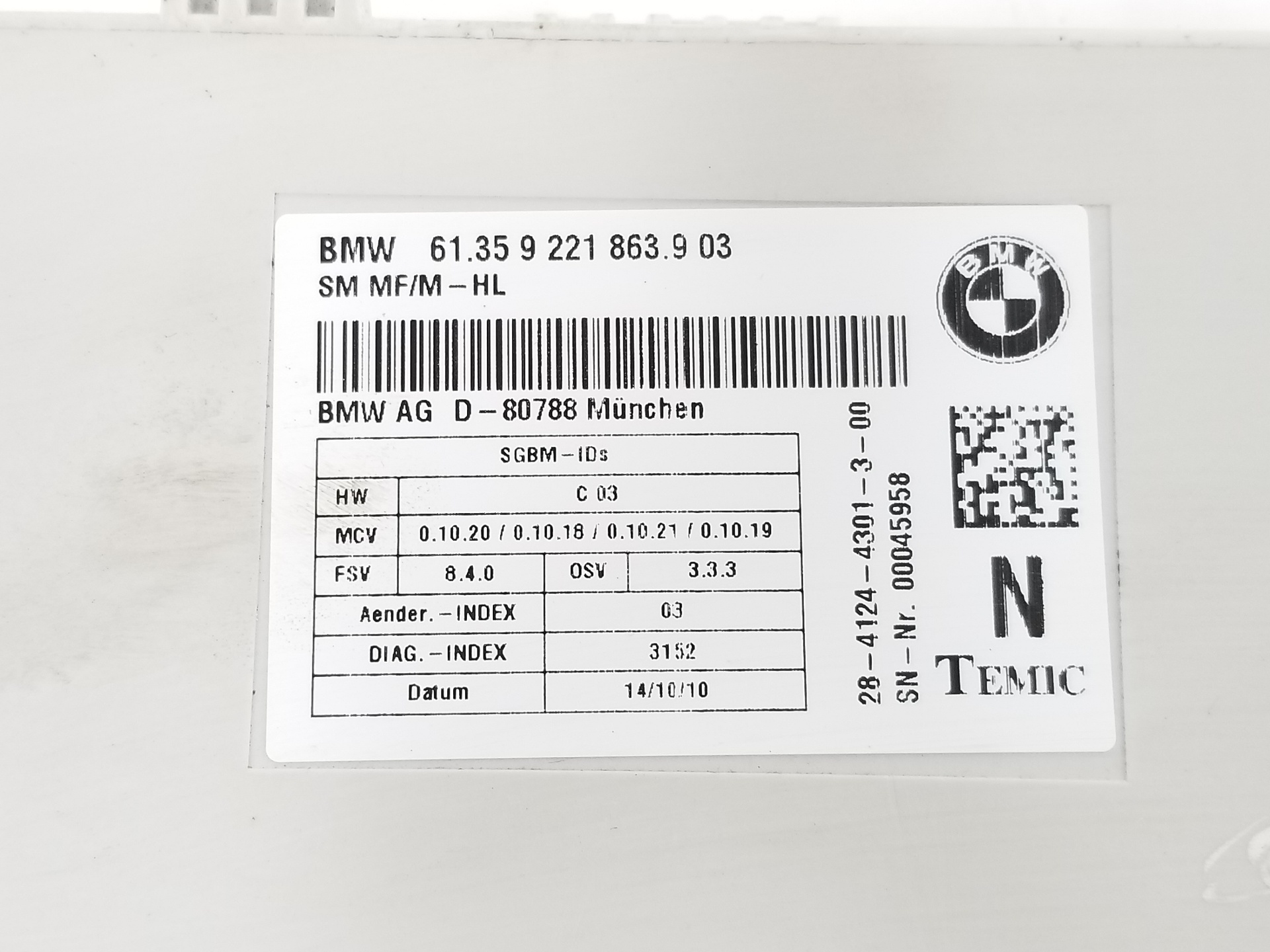 MODULO ELECTRONICO BMW X6 61359221863 | 9221863 | UNIDAD | DE | CONTROL | DEL | ASIENTO | DELANTERO Riferimento TELEPECAS: 9548590 19 Jan 2023 |