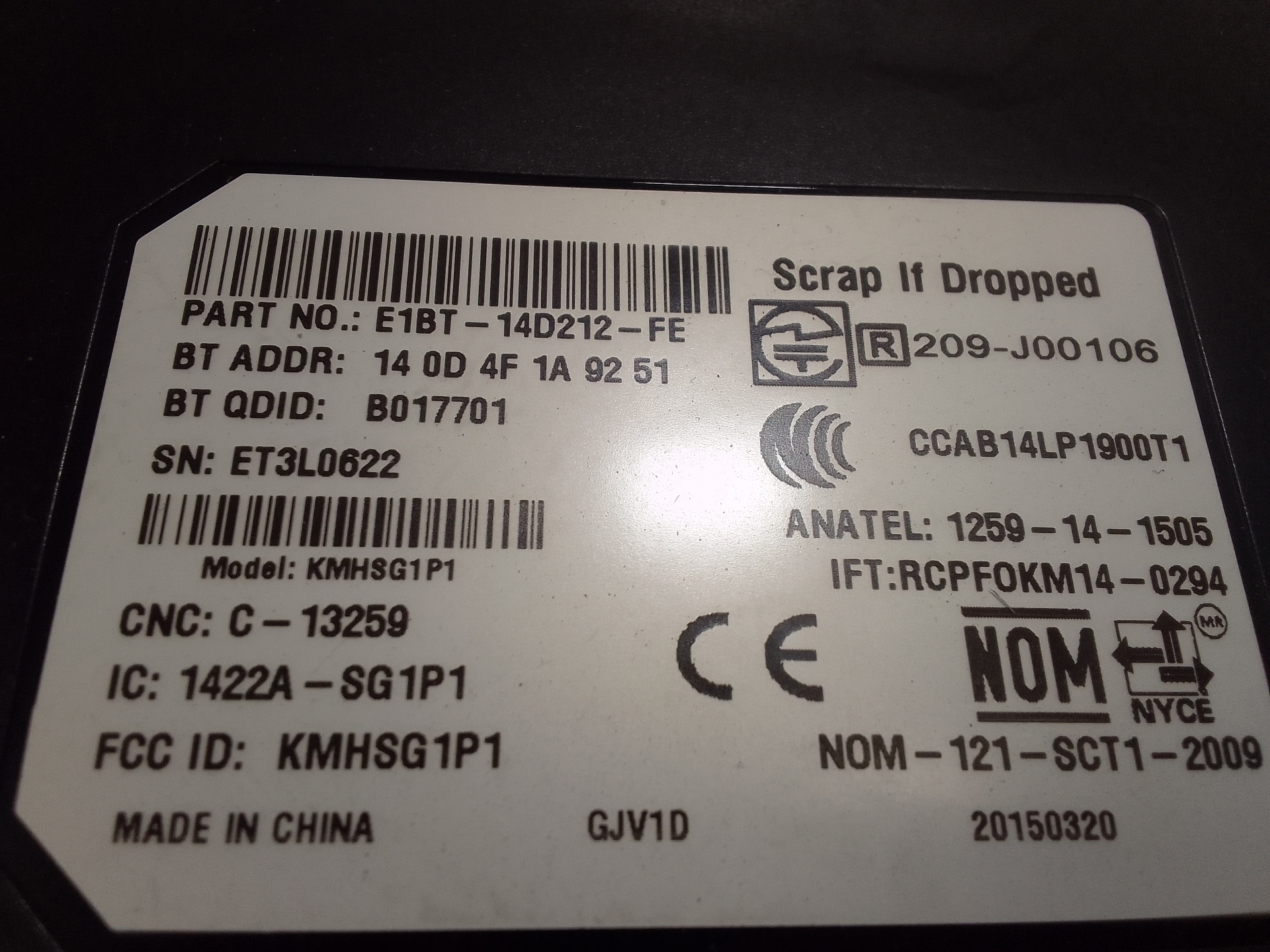 MODULO ELECTRONICO FORD FOCUS LIM. E1BT14D212FE Riferimento TELEPECAS: 10198285 ID Stock: 813343 20 Abr 2023 |