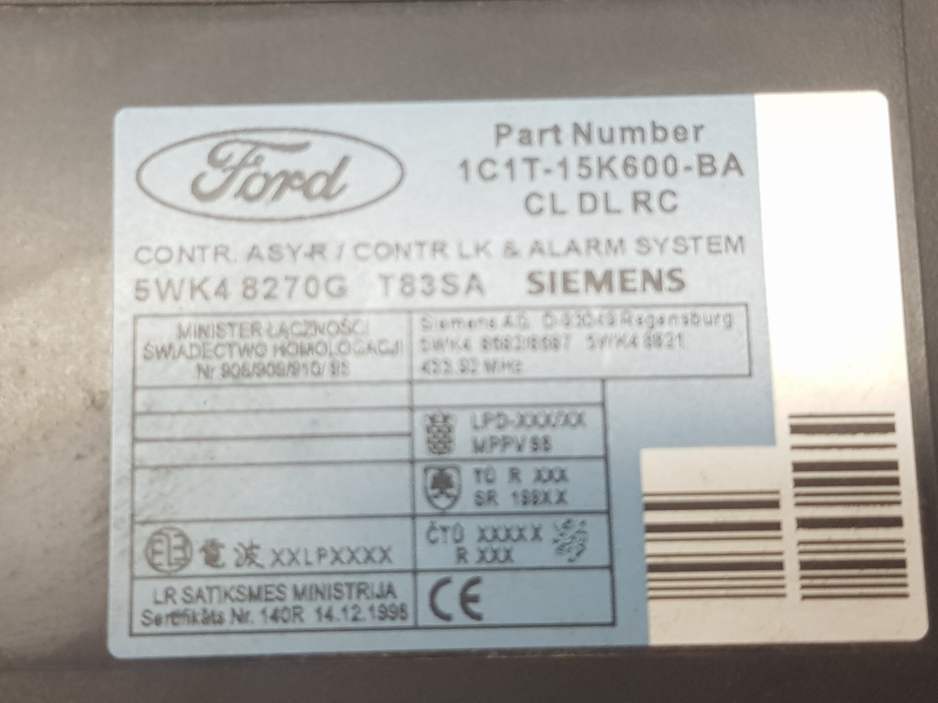 MODULO ELECTRONICO FORD TRANSIT MOD. 2000 COMBI 1C1T15K600BA | 1C1T15K600BA Riferimento TELEPECAS: 6769794 16 Jun 2022 |
