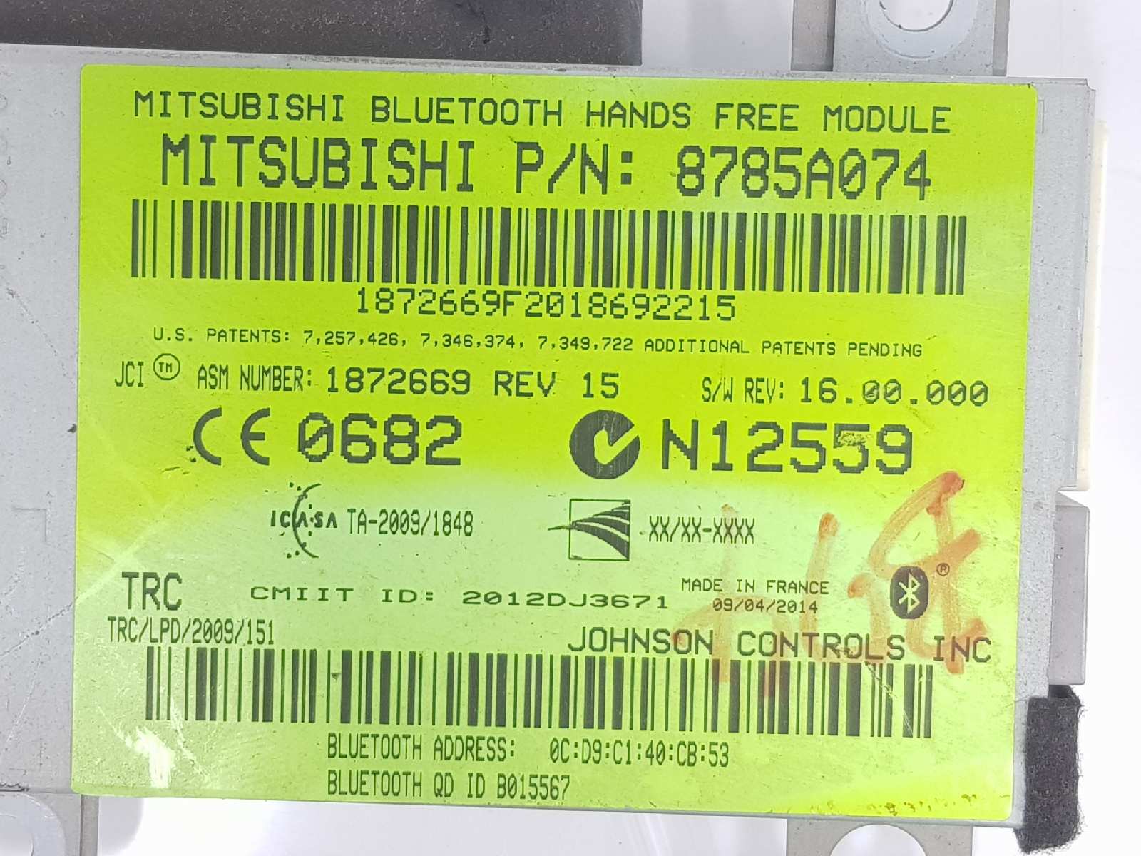 MODULO ELECTRONICO MITSUBISHI ASX 8785A074 | 1872669 Riferimento TELEPECAS: 7084697 14 Jun 2021 |