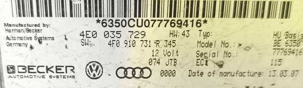 Modulo elettronico AUDI A8 D3 (4E2, 4E8) [10.2002 - 12.2010] 4E0035729 Riferimento TELEPECAS: 14230780 24 Abr 2025 |