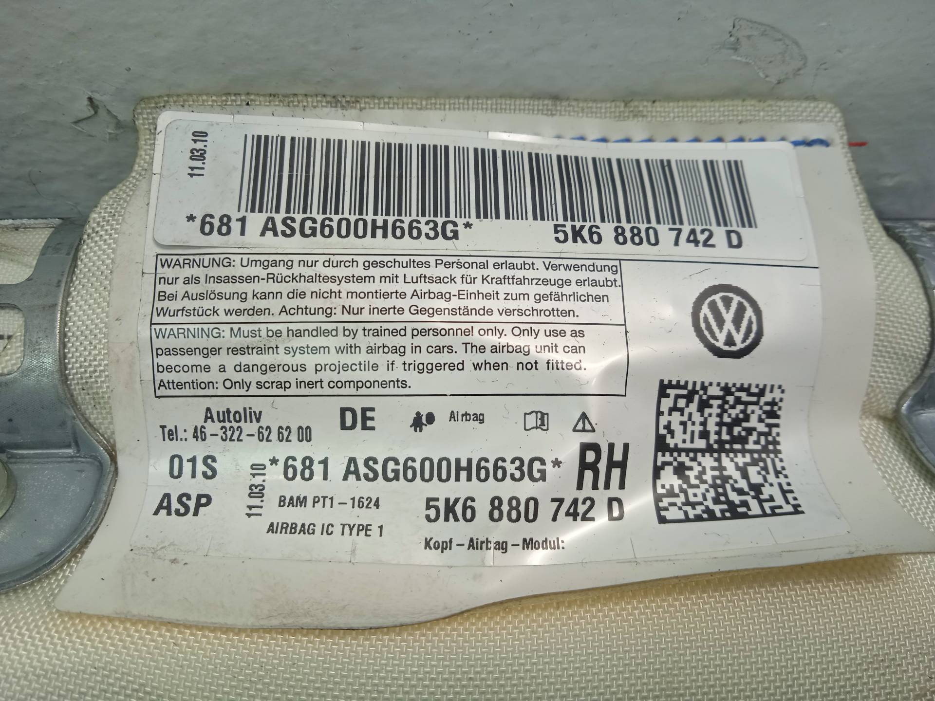 AIRBAG CORTINA DELANTERO DERECHO 63 €